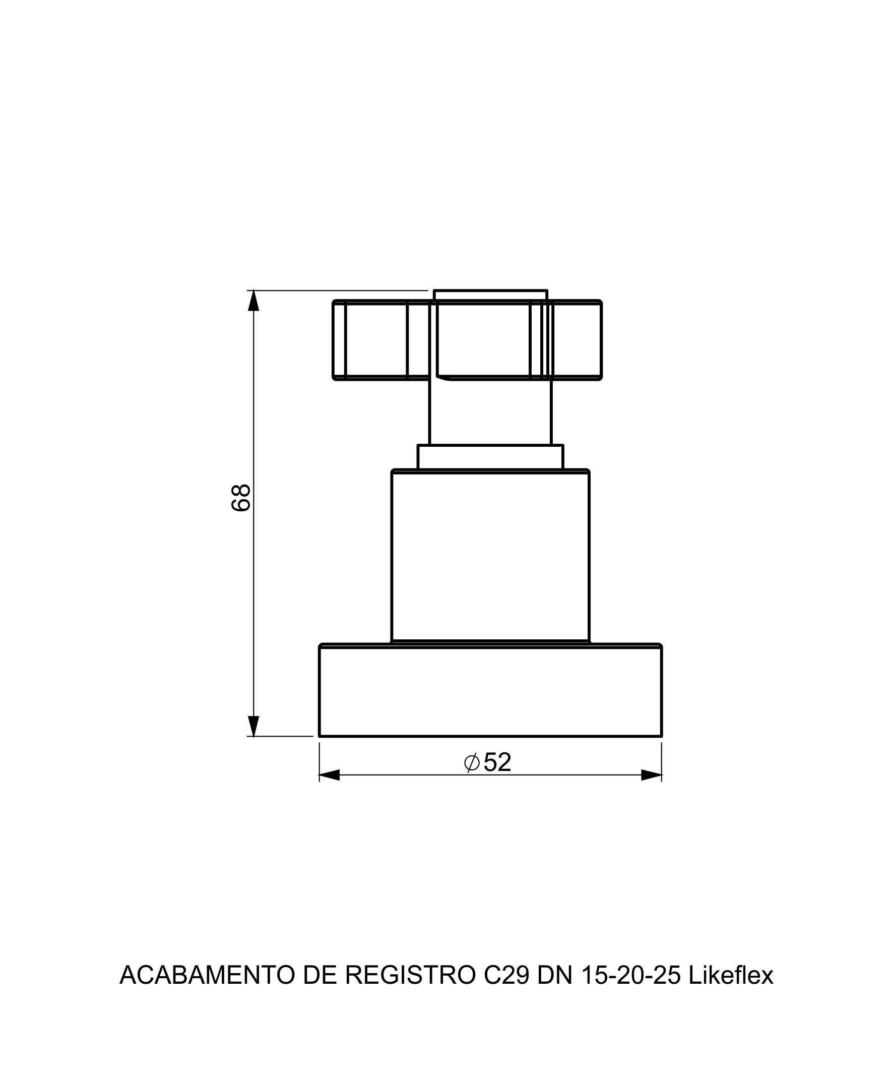 - Modelo pequeno: p/ registros DN15 (1/2″), DN20 (3/4”) e DN25(1”).