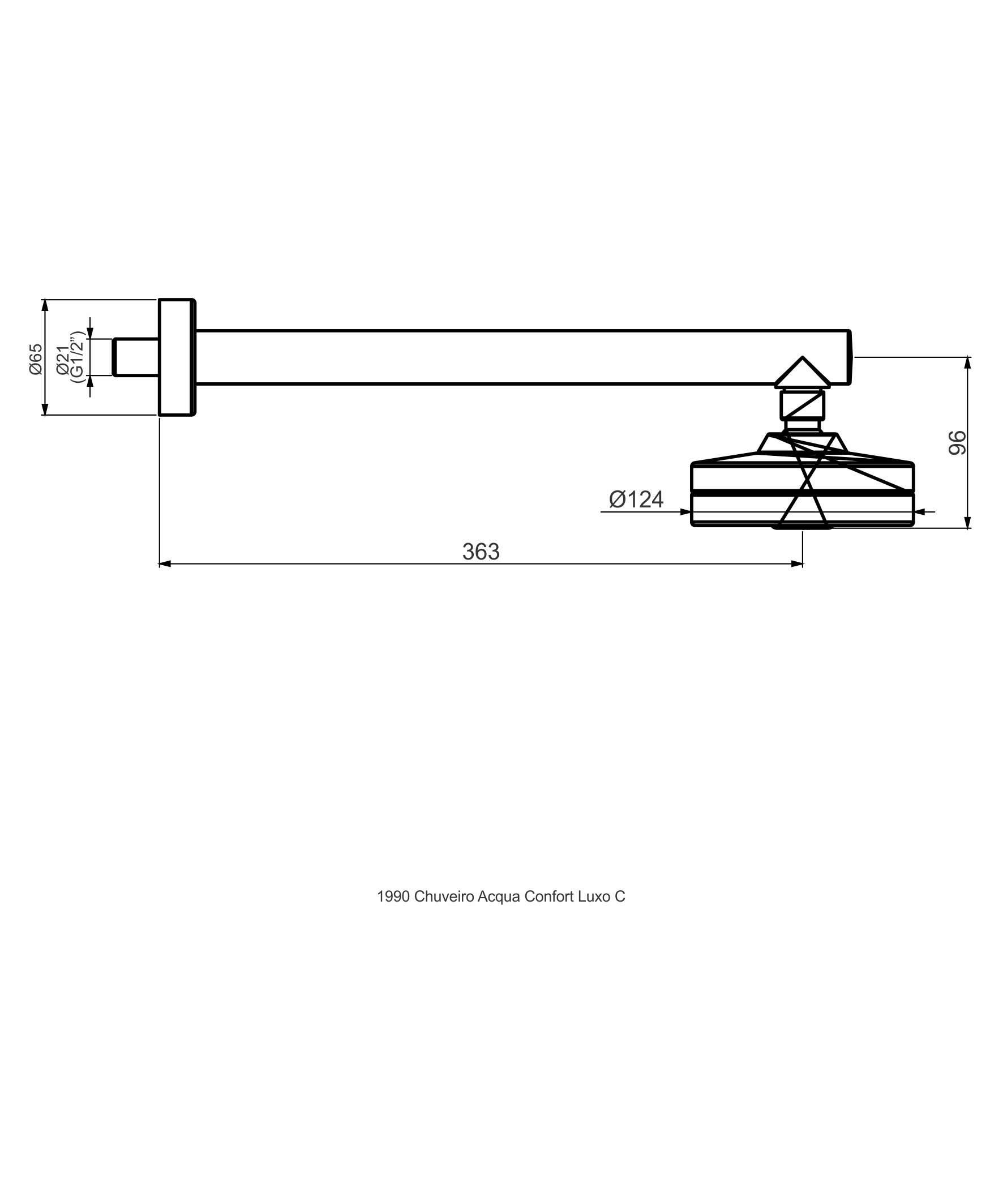 - Corpo do chuveiro 12cm em ABS com acabamento totalmente cromado.