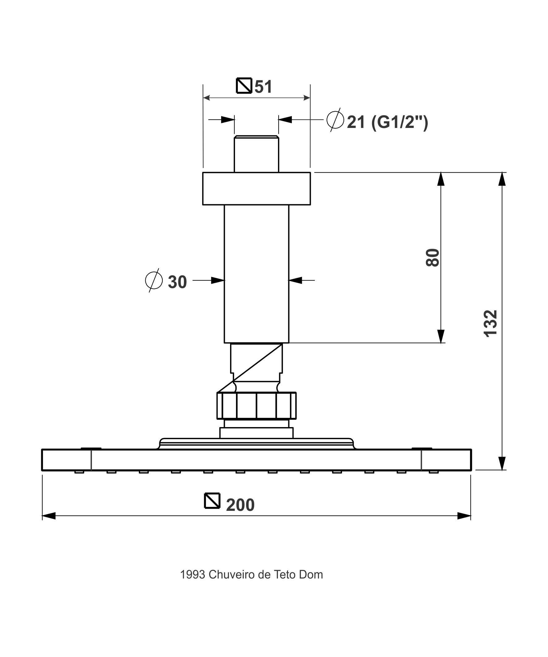 - Corpo do chuveiro 20cm em metal com acabamento totalmente cromado com crivo plƔstico maleƔvel.