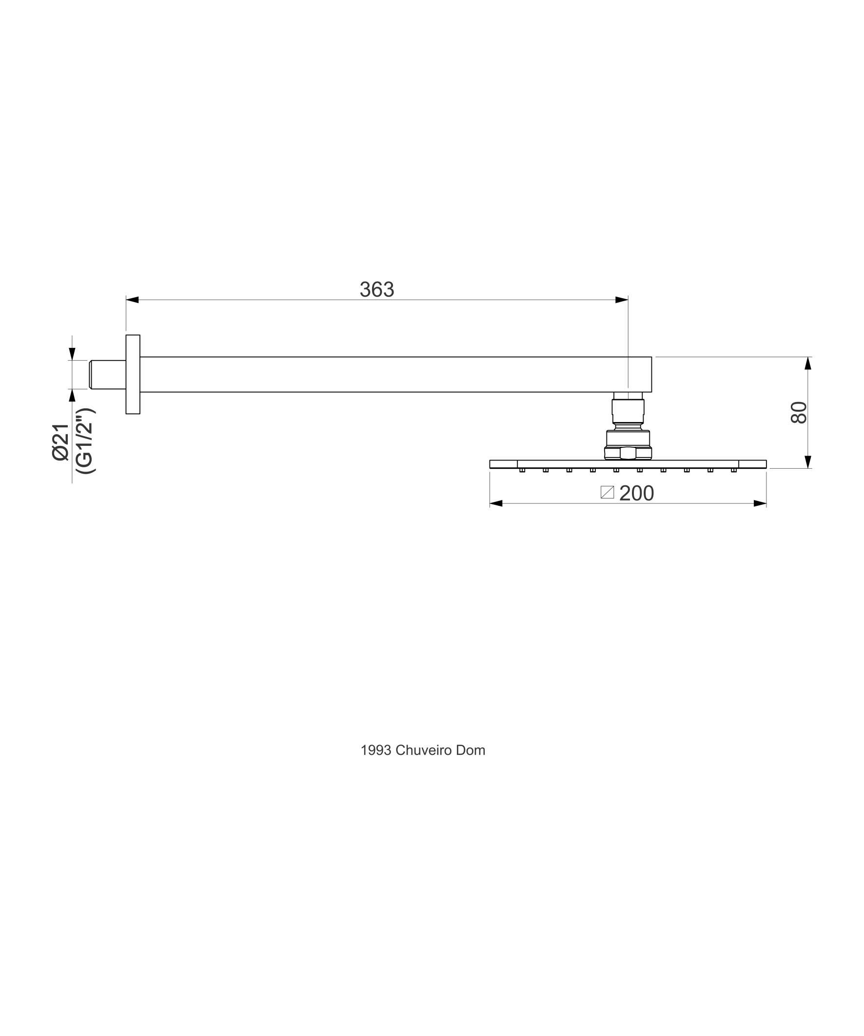 - Corpo do chuveiro 20cm em metal com acabamento totalmente cromado com crivo plástico maleável.