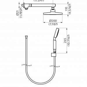 - Chuveiro Slim com válvula de desvio, flexível metálico cromado de 1,75m e ducha manual com suporte de fixação.
