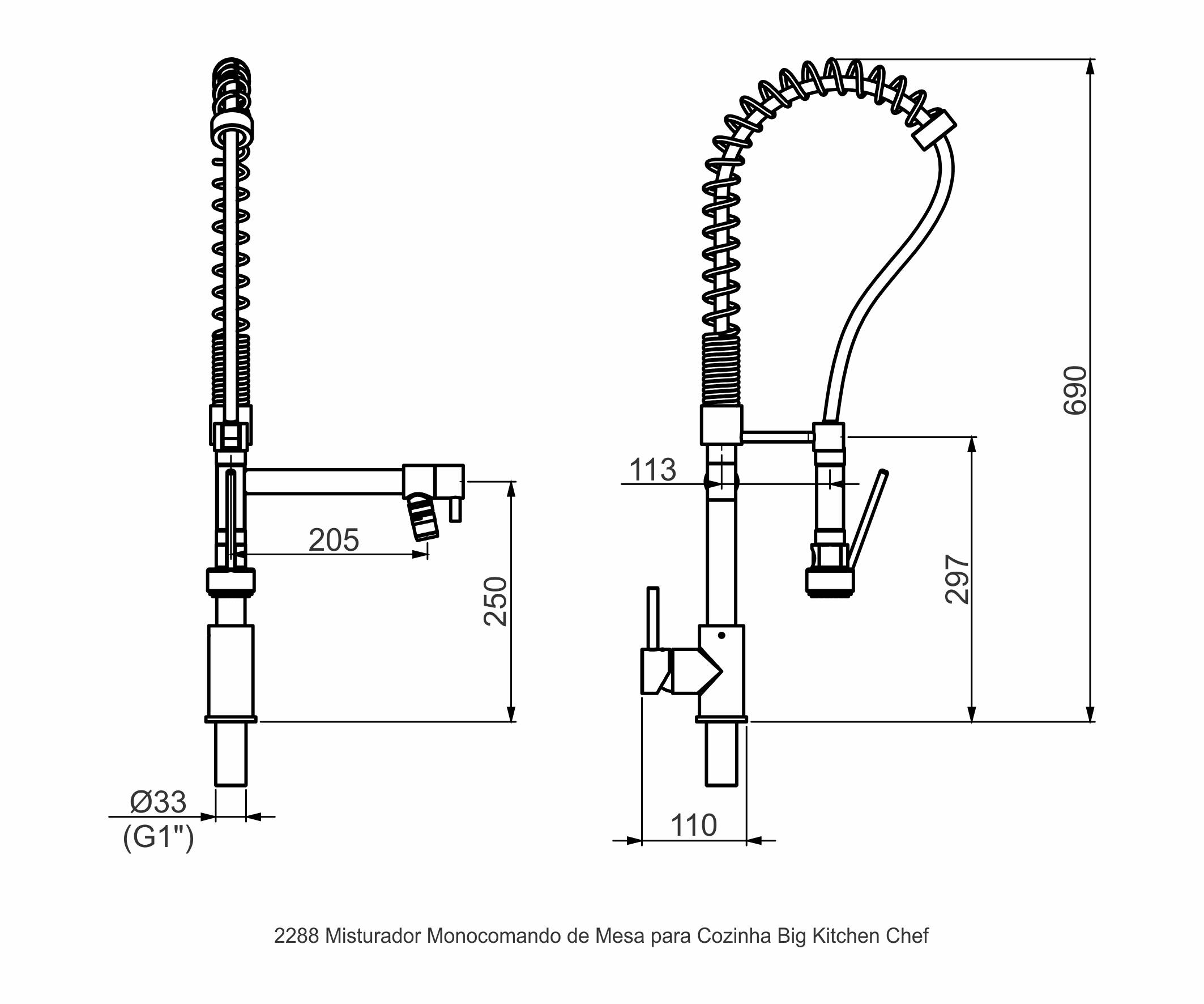- Acabamento superficial cromado, alta resistência à corrosão.