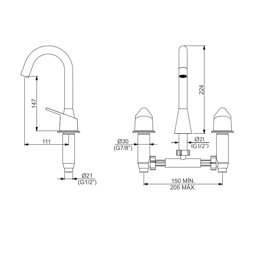 - Volantes metálicos em forma de alavanca anatômica que facilitam a abertura dos metais.
