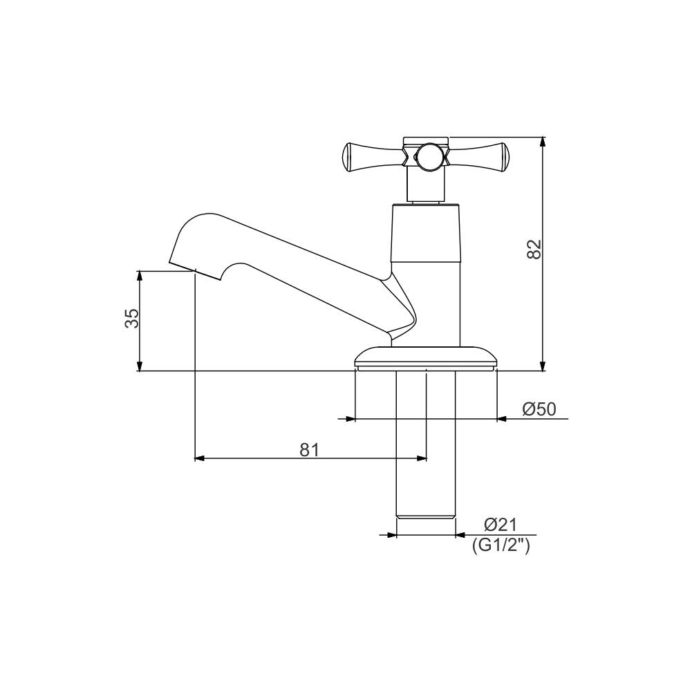Torneira metálica econômica e compacta, indicada para lavatórios.