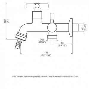 - Torneira de parede indicada para tanque e máquina de lavar roupas.